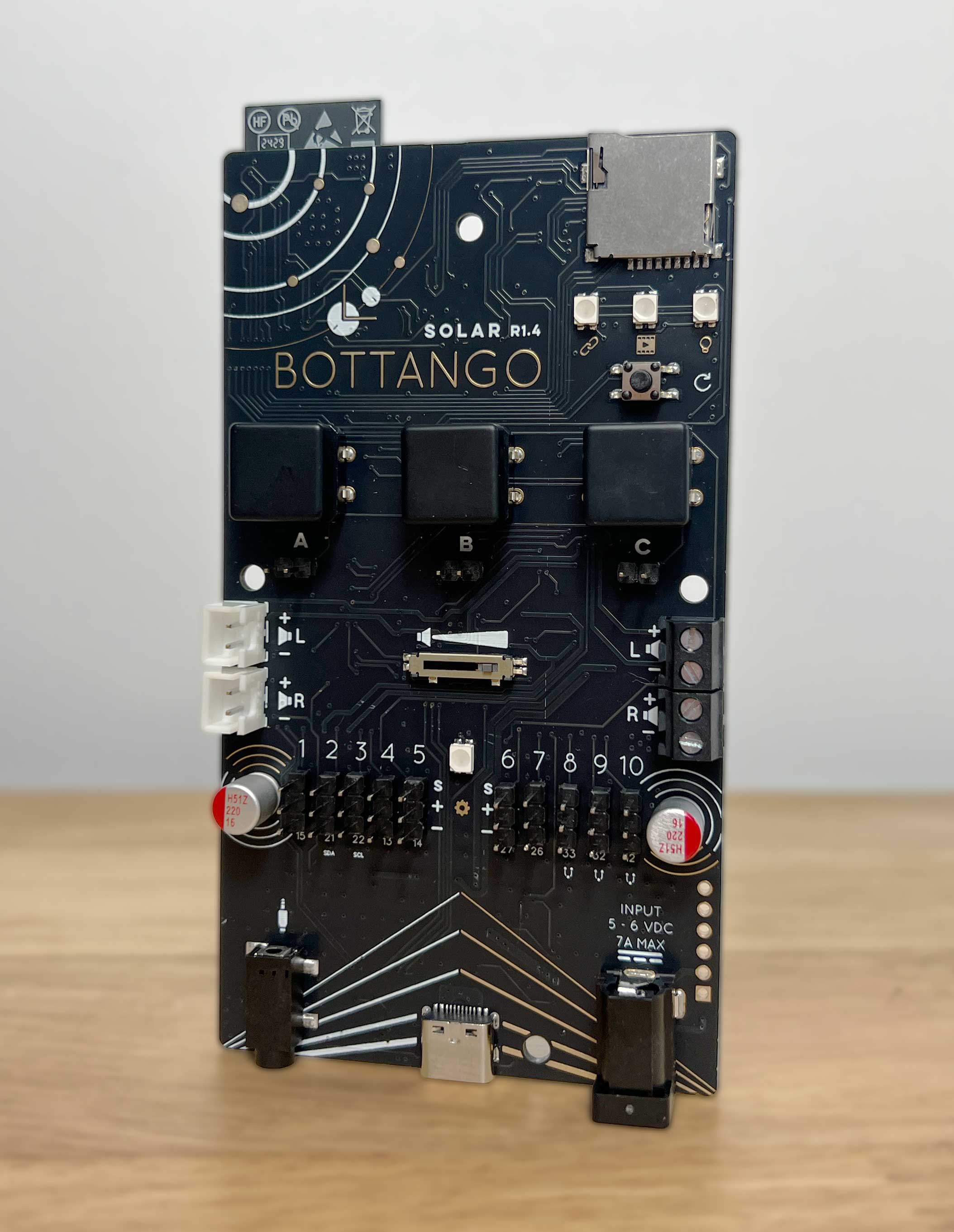 - MicroSD card reader for storing animations. Play animations easily without a connected computer, and serve out animation data to all other connected Bottango control boards as a show controller.